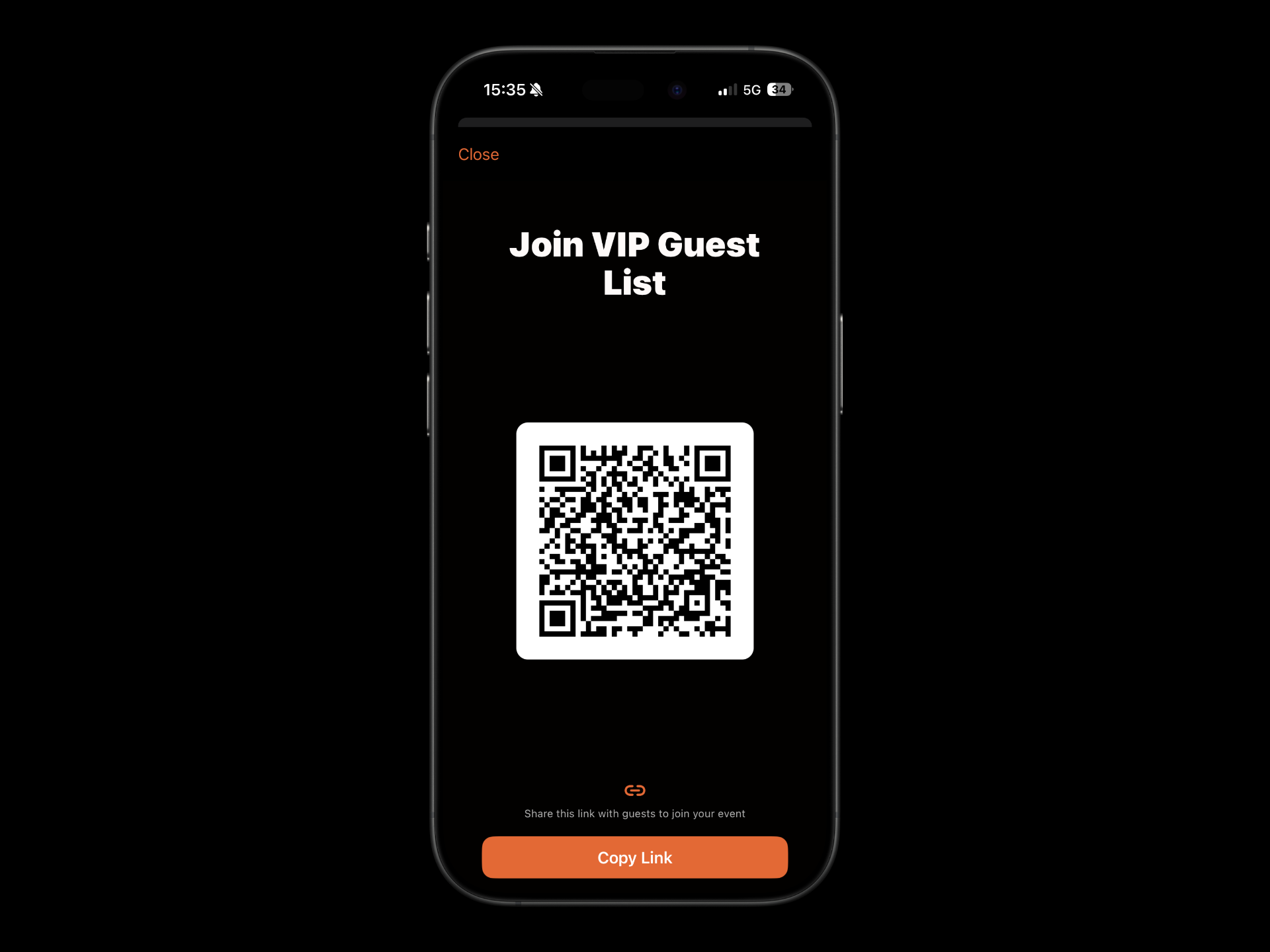 Tap the QR code symbol at the top right of the page and ask each guest to scan it with their device — it’s quick and simple.
